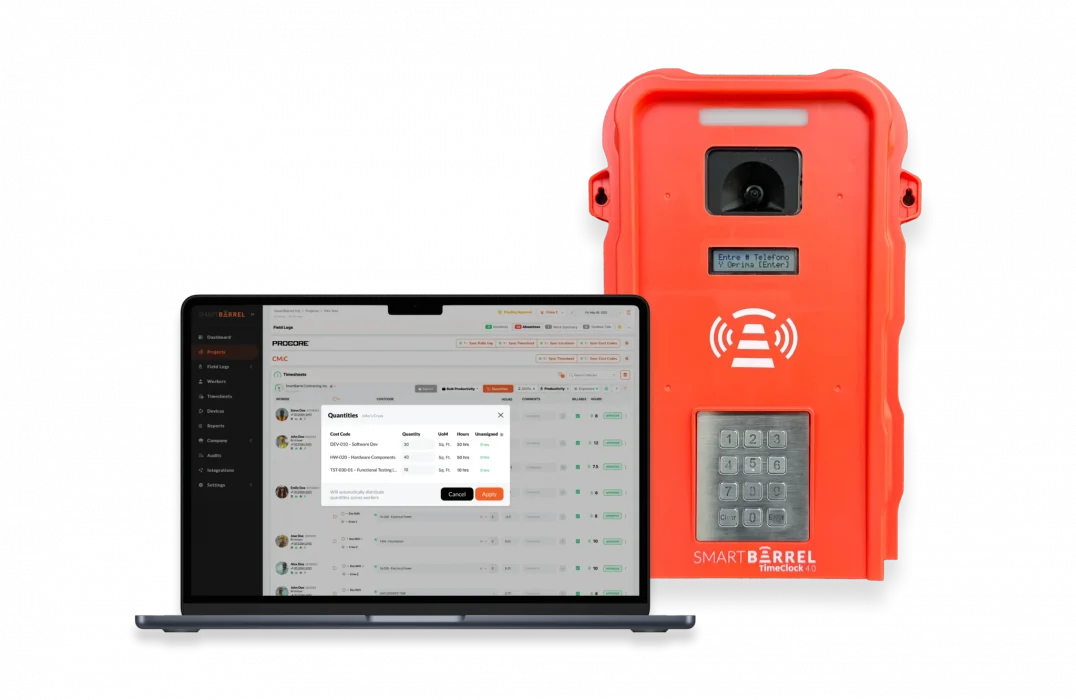 Self-perform GCs and speciality contractors with buddy punching or time theft issues need verified, fraud-proof time tracking. | Contact SmartBarrel for pricing |